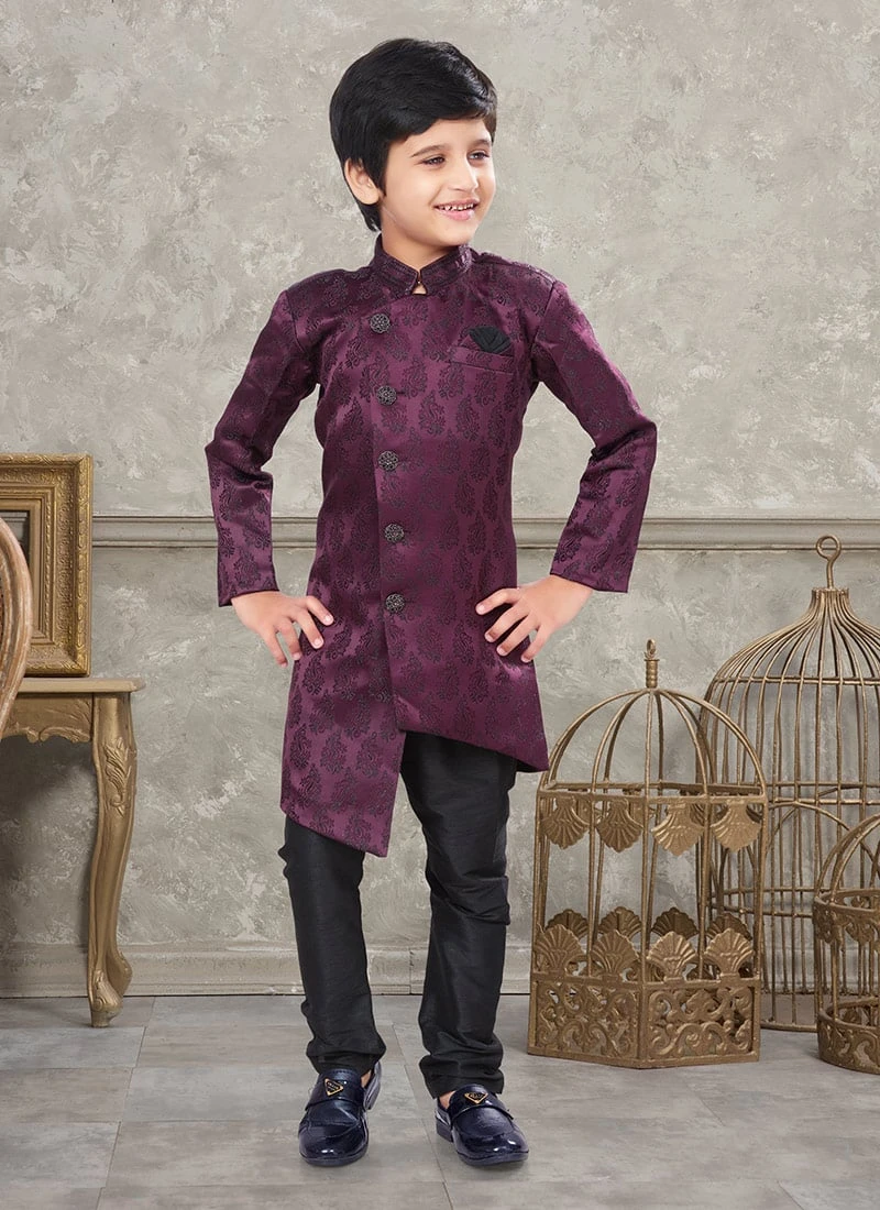 The choice of art silk jacquard fabric elevates this sherwani to a higher level of opulence. Jacquard weaving creates intricate patterns and textures that catch the light beautifully making it a standout piece in any setting.
