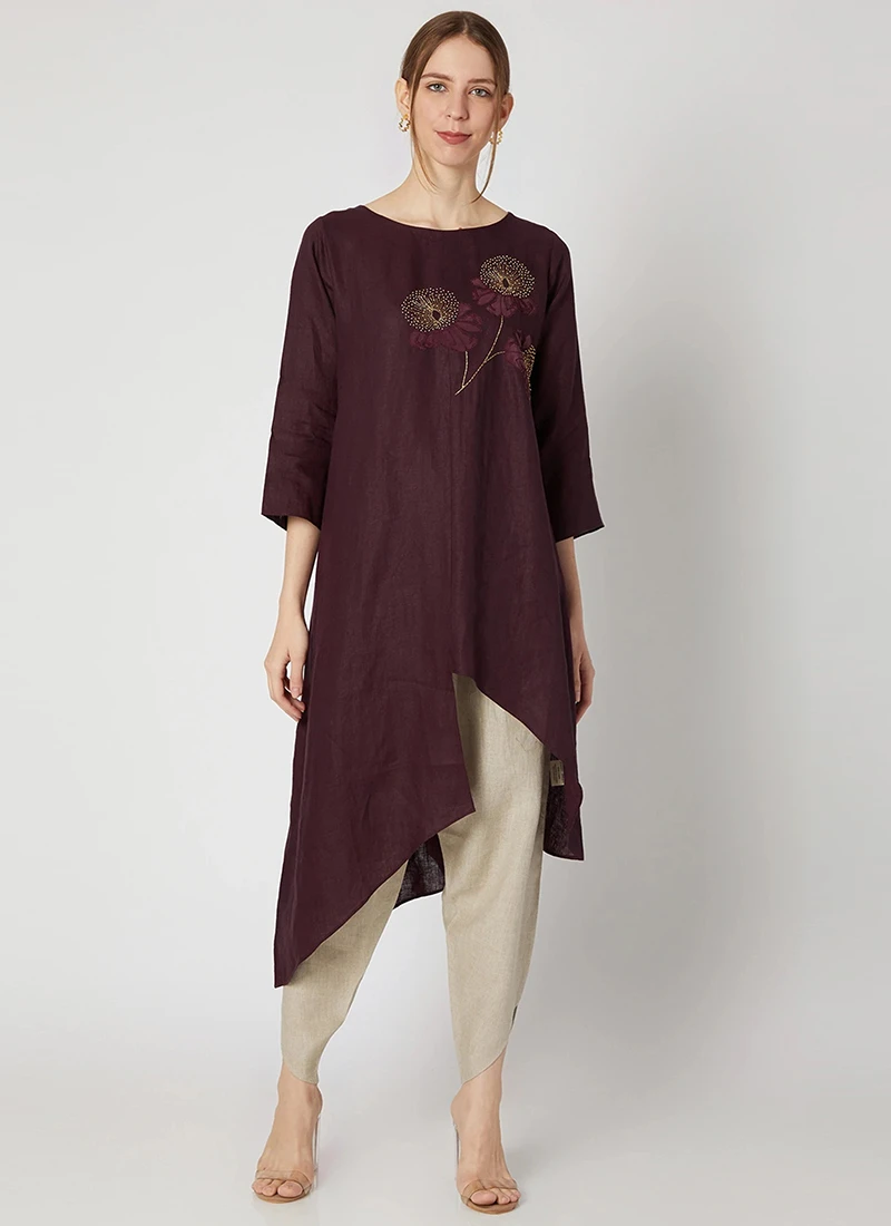 Wine Rayon Slub Kurta Set Work Wear