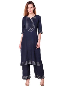 Navy Blue Cotton Embroidered Kurta Palazzo Set After Six Wear