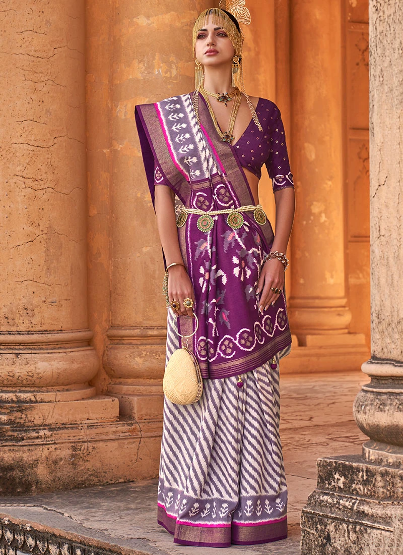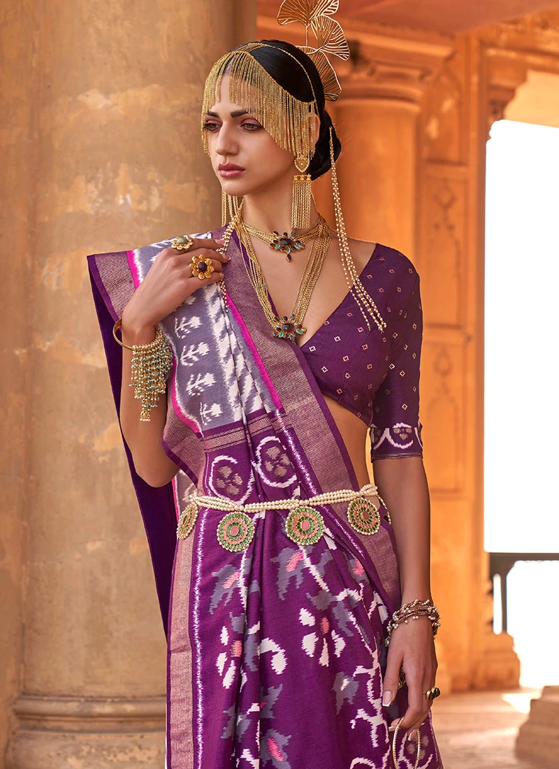 Woven Print Work Silk Purple Color Saree Festive Wear