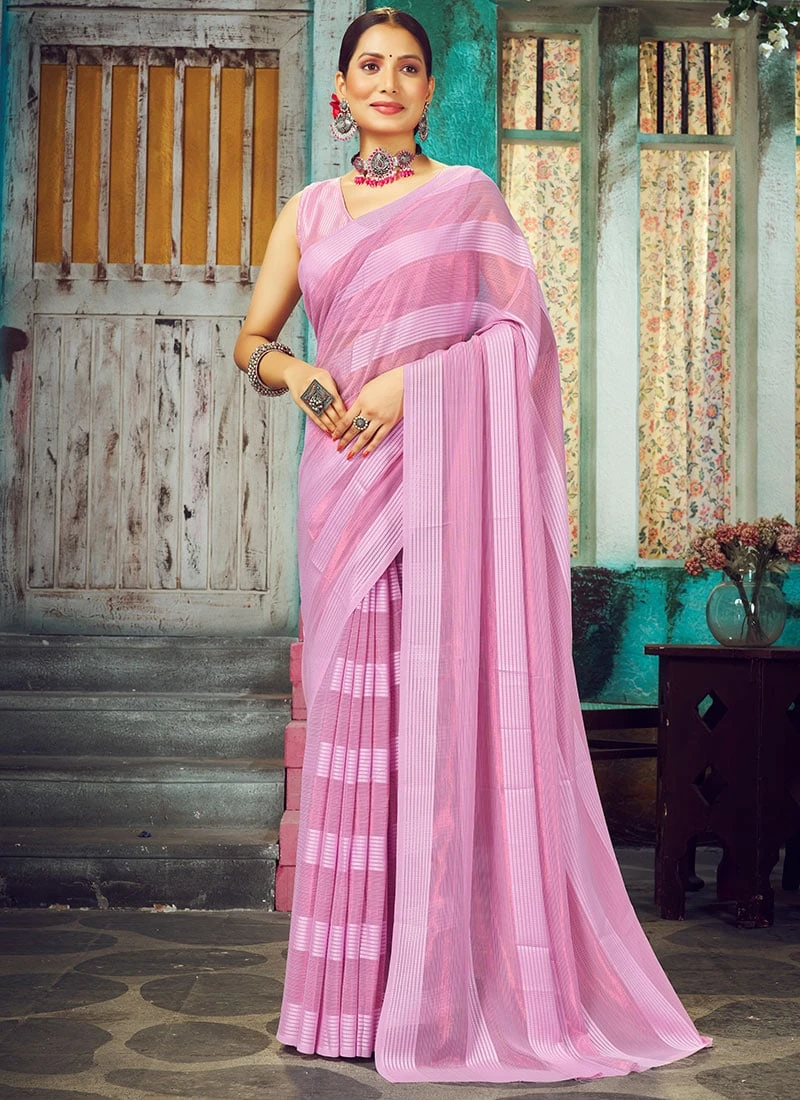 Woven Work Lavender Color Weightless Chinon Saree Festive Wear