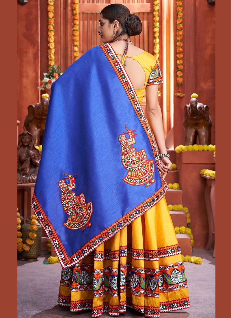 Yellow Art Silk Embroidery With Mirror Work Chaniya Choli Festive Wear
