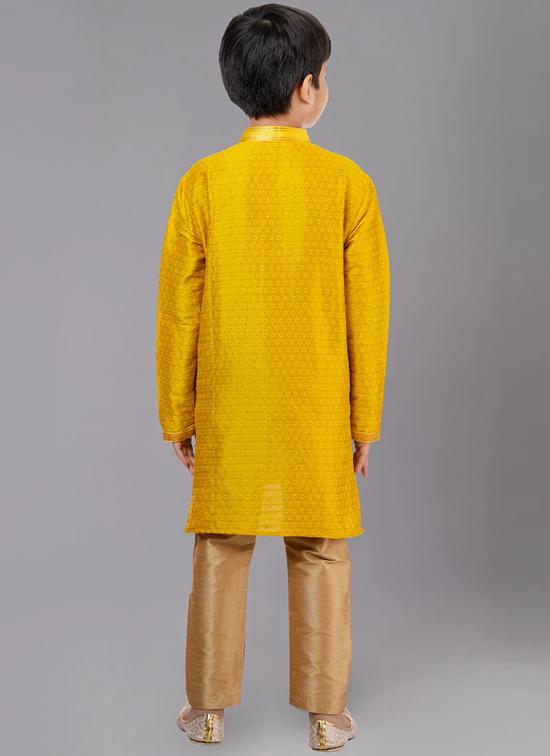 Yellow Cotton Kids Kurta Pyjama Festive Wear