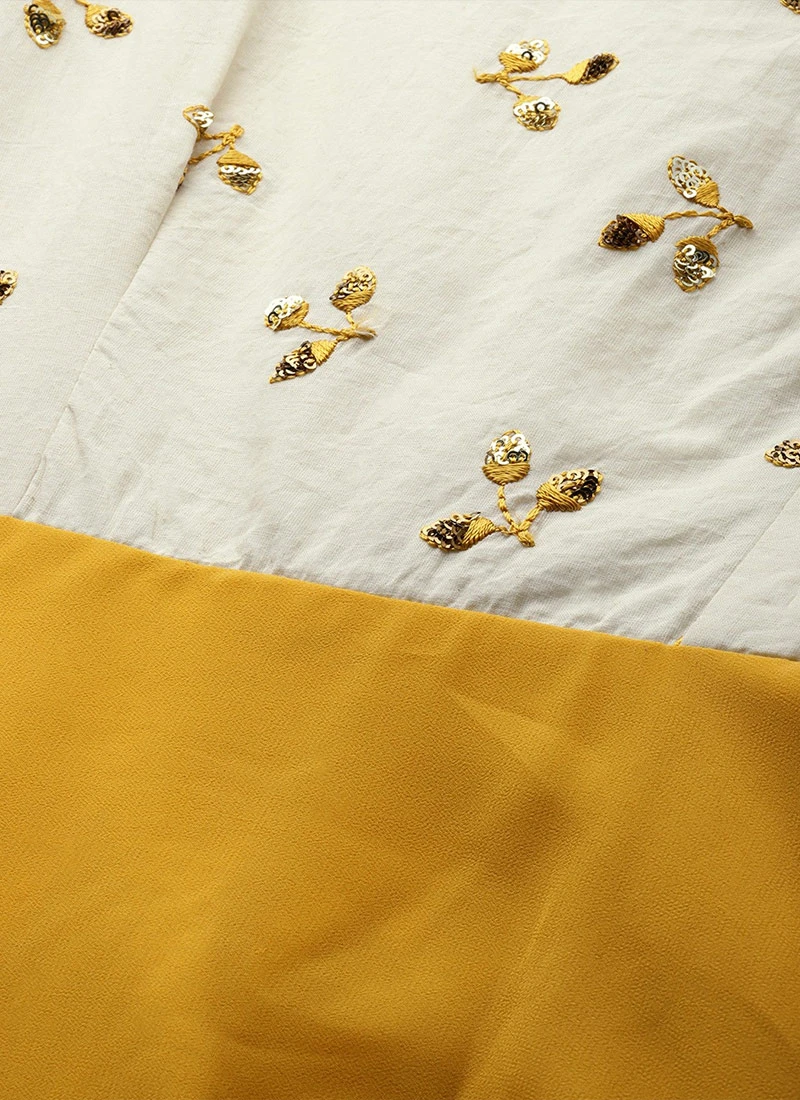 Yellow Embroidered Boat Neckline Gown Festive Wear